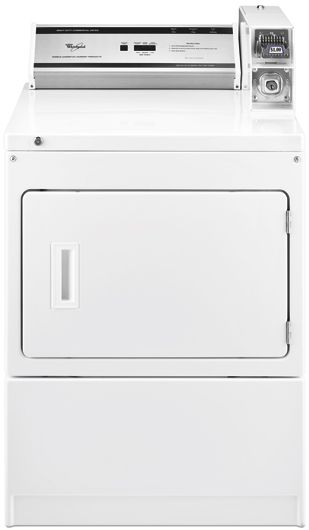 Whirlpool® 27” Commercial Gas Dryer-White with 7.4 cu. ft. drum capacity, front service accessibility, 3 cycles and 180° wide-opening side-swing doorRead More